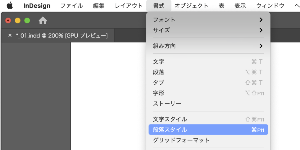 左上のメニュー「書式」→「段落スタイル」でパレットが開きます。