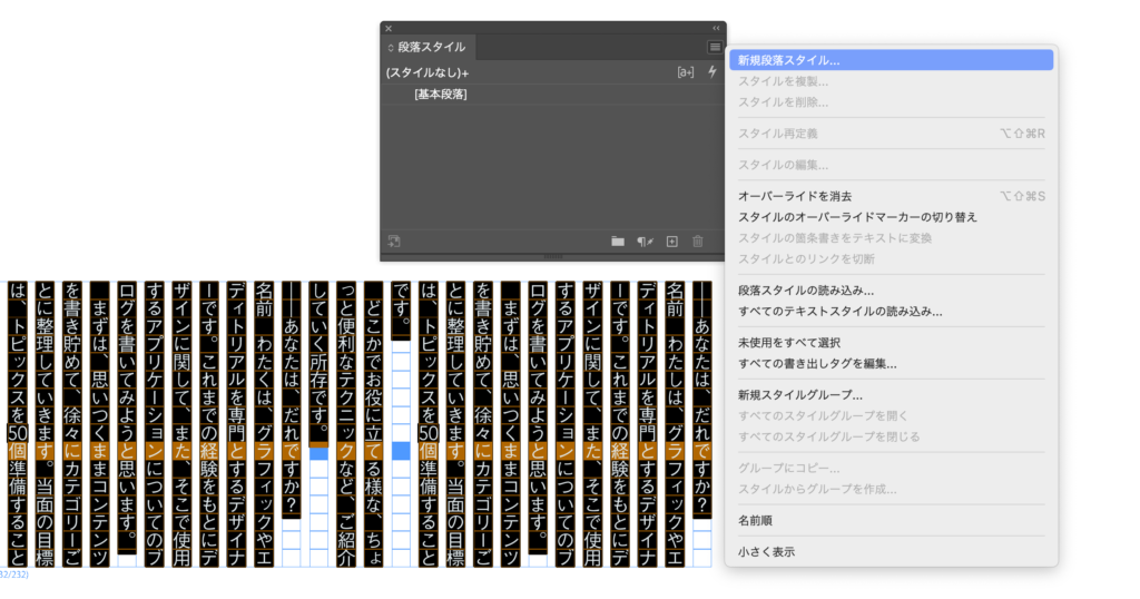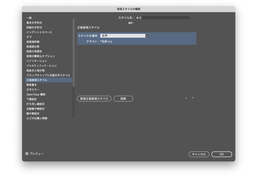 これを制作する際、ひとつひとつ太字の設定をしていく方法もありますが、ここで「段落スタイル」と「正規表現」が使えます。