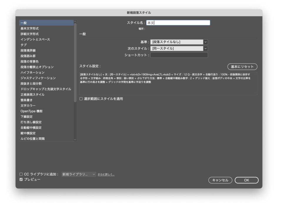 段落スタイルの登録の手順はいくつかありますが、それは別のページで詳しく紹介します(準備中です)。